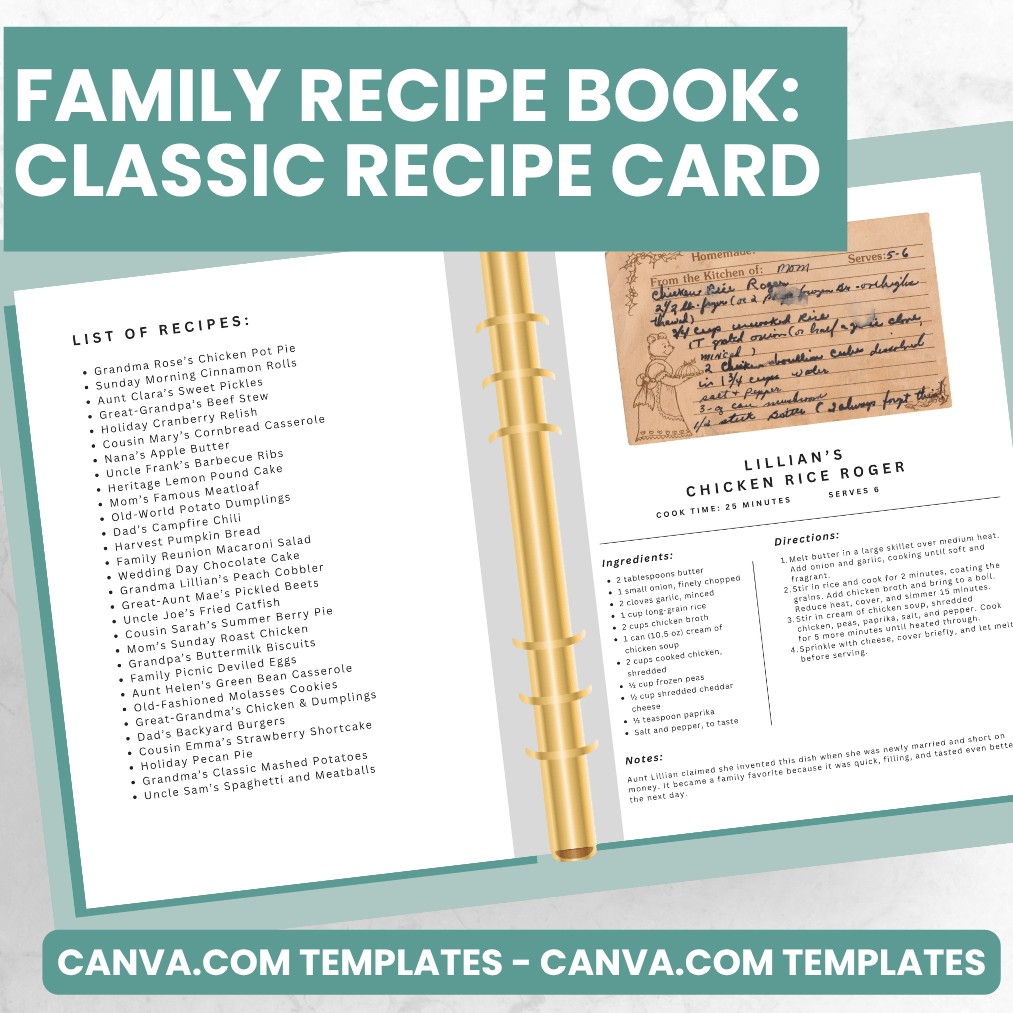 Classic Recipe Card Pages - Canva Family Recipe Book