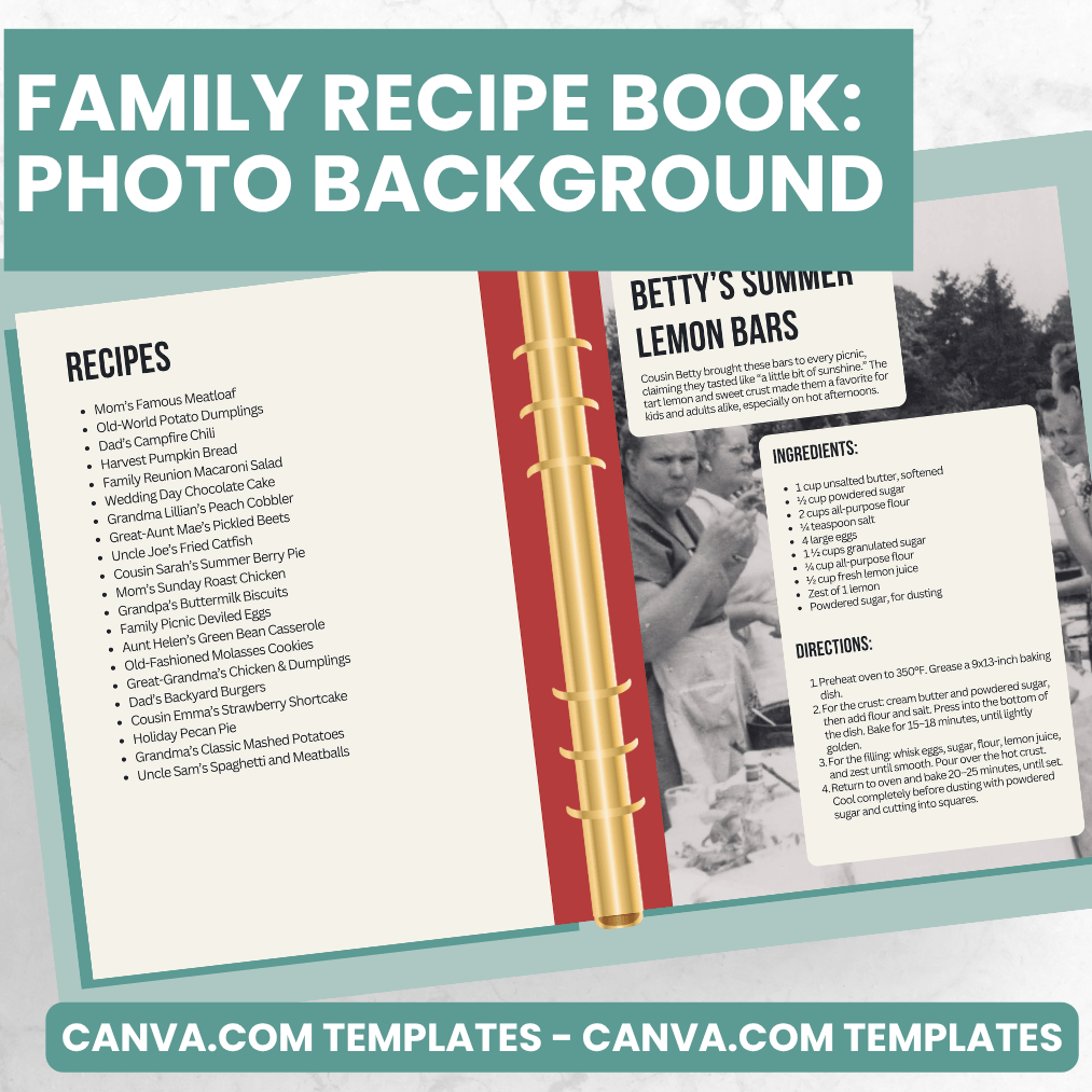 Photo Background Recipe Pages - Canva Family Recipe Book