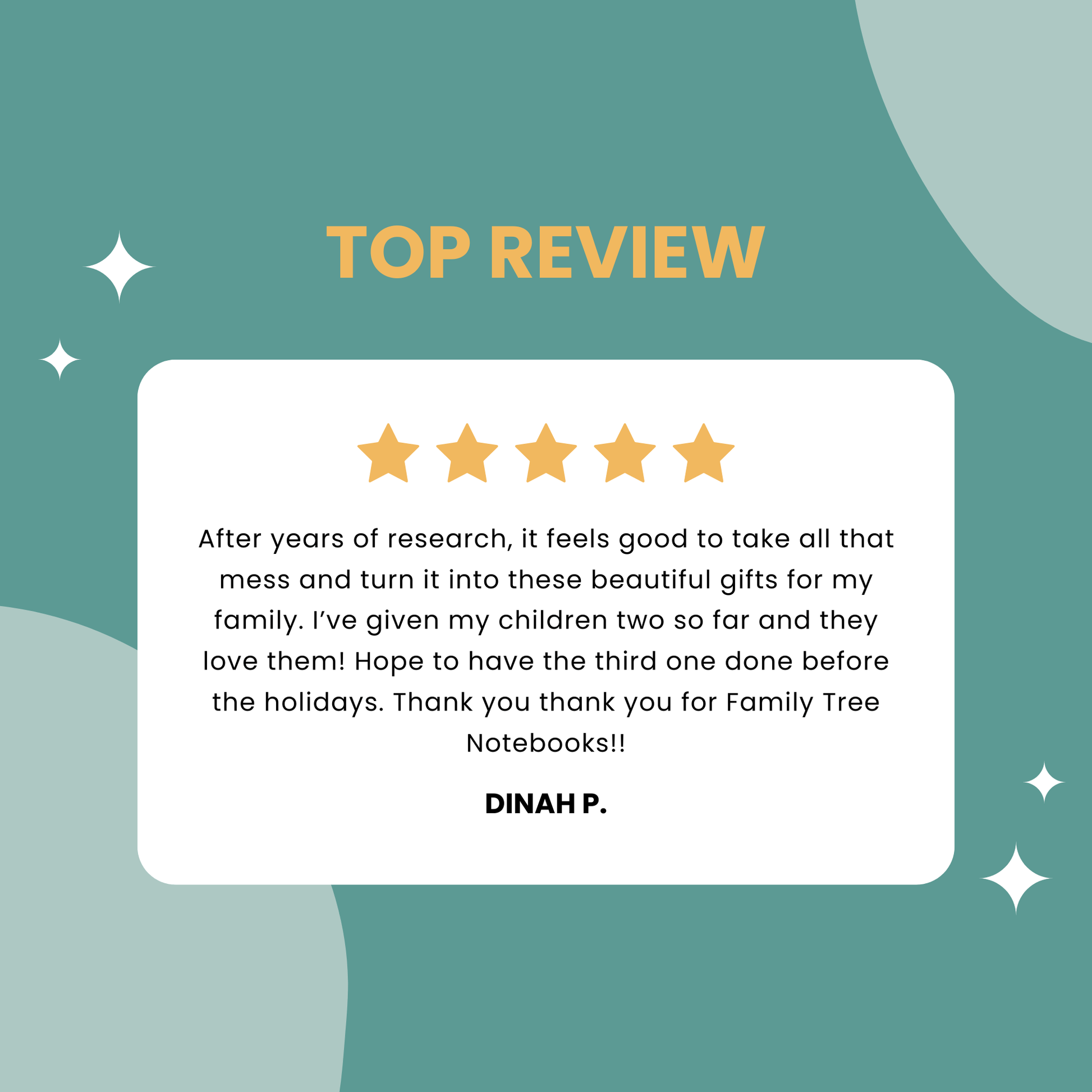 - The complete Family Tree Notebooks Masterclass (originally $299) with six weeks of video guides to get you all the way to a finished book